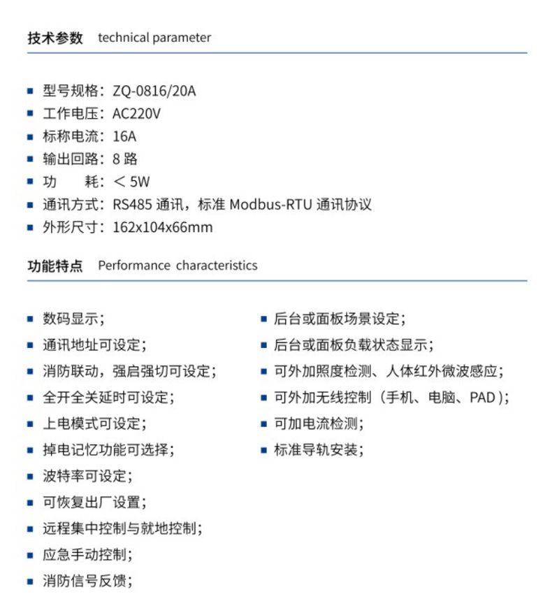 ZQ-0816/20A 8路智能照明控制模块