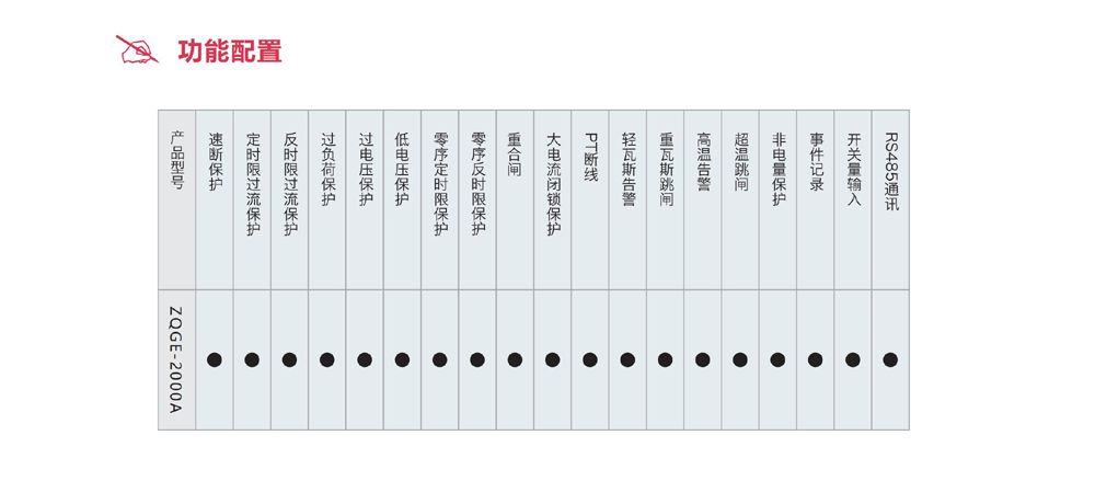 ZQGE-2000A微机综合保护装置主要是针对中置柜系统应用而开发。它具有相间电流速断、过流、三种动作特性曲线的反时限过流保护、零序过流保护、重合闸、过电压、低电压保护及非电量保护跳闸功能,还具有多电量