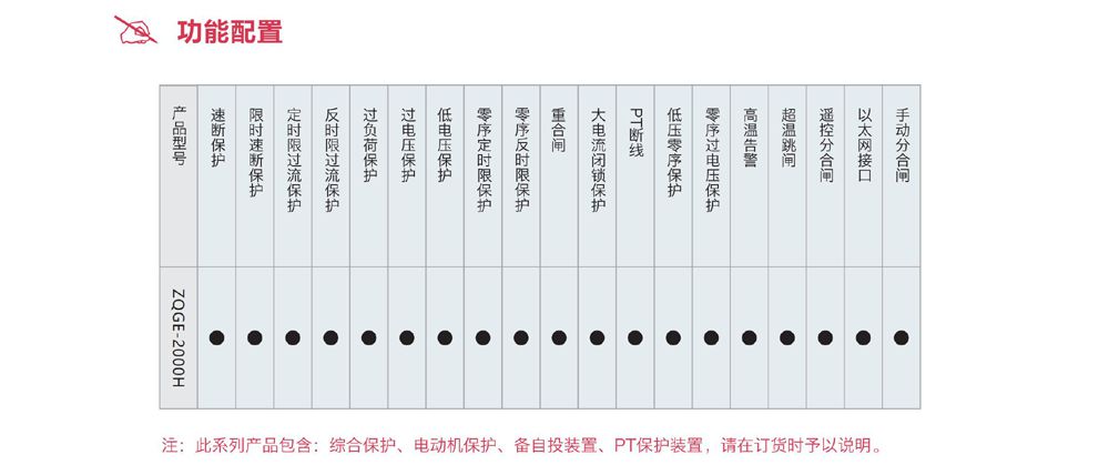 ZQGE-2000H微机综合保护测控装置主要是针对中置柜系统应用而开发。它具有相间电流速断、过流、三种动作特性曲线的反时限过流保护、过负荷、过电压、低电压、零序过压、重合闸、定时限零序过流、反时限零序过流、低压零序保护、变压器本体保护及非电量保护跳闸功能,还具有多电量测量、遥控、遥信等监控功能。