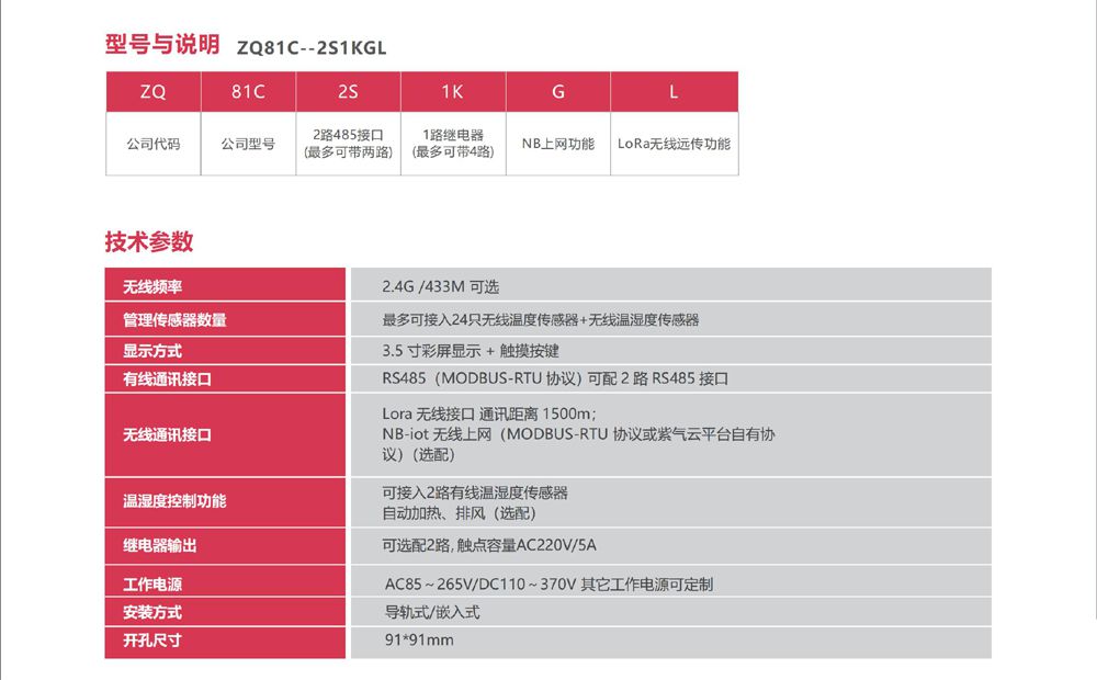 ZQ81C电气接点测温装置用于高、中、低压电力系统 (110kV,6-35kV 和 0.4kV)和对温度有较高要求电气接点设备的智能化装置。它集在线温度测量、数据采集、数据分析和控制功能于一体的现代化高科技产品。其各项技术指标均能达到国际标准, 无线电气接点测温装置具有在线采集接点温度(接点数可选定)。该装置提供通讯接口可与计算机监控系统连接 ,支持 RS485 接口 MODBUS 通讯协议或其它指定通讯协议 ( 选配 ),波特率可选。
