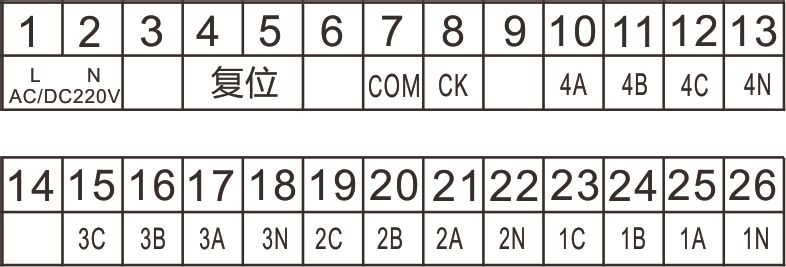 · 装置提供一对常开接点COM、CK,接点容量5A/220VAC ,可接各种声光报警器或提供给综合保护装置使信息远传。