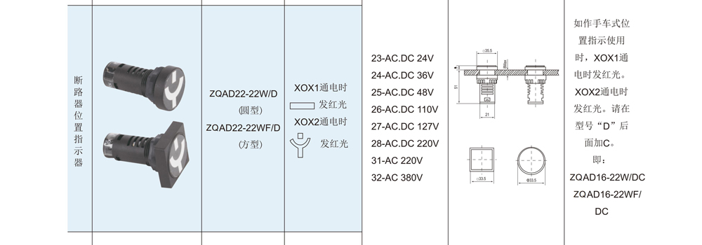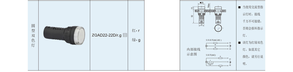 产品用途ZQAD22系列指示灯适用于电力、电讯、机床、船舶、纺织、印刷、矿山机械等设备的线路中作指示信号、预告信号、事故信号及其他指示用信号。